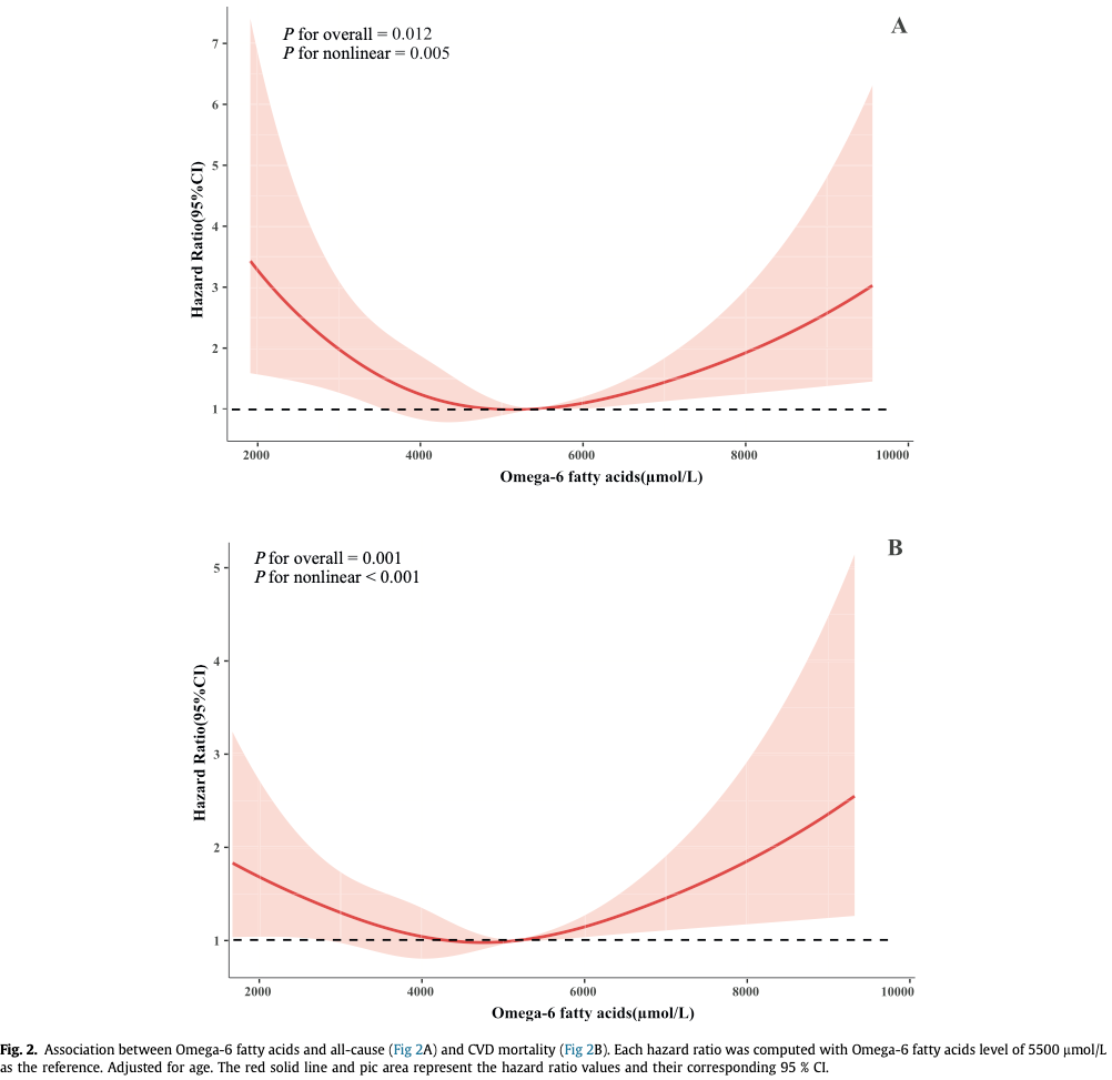 Furthermore, as with most nutrients, omega-6 PUFAs have a U-shaped curve when it comes to associations with all-cause and cardiovascular mortality:14